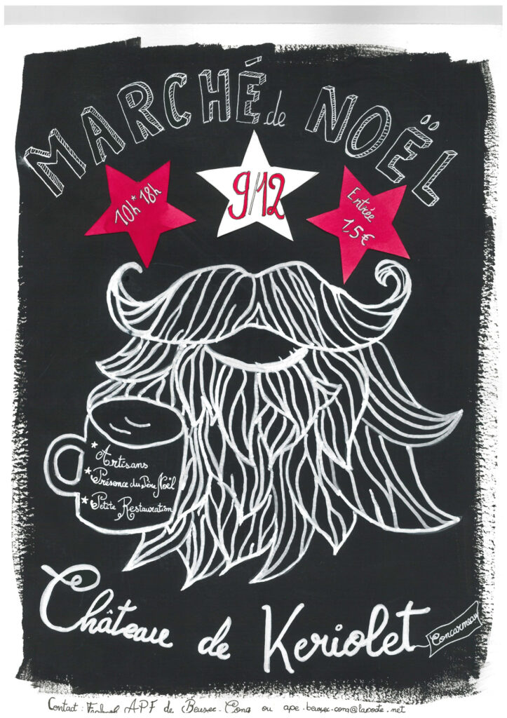 Pour cette nouvelle édition du Marché de Noël, l’APE de l’école de Beuzec à Concarneau accueillera des artisans d’art. Dimanche 11 décembre de 10 h à 18 h. Entrée 2 € BIENVENUE A TOUS !!!