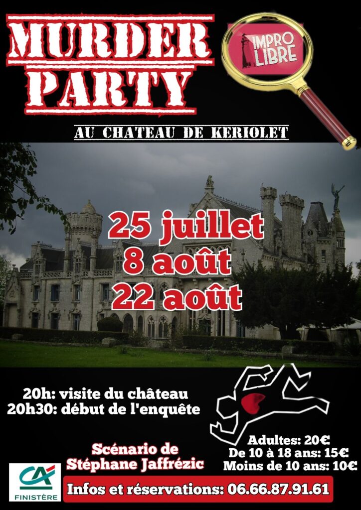 Les Murder Party au Château de Kériolet c’est désormais tous les 15 jours !? Avec à chaque fois un scénario différent! Prochaines dates: le lundi 8 août et le lundi 22 août