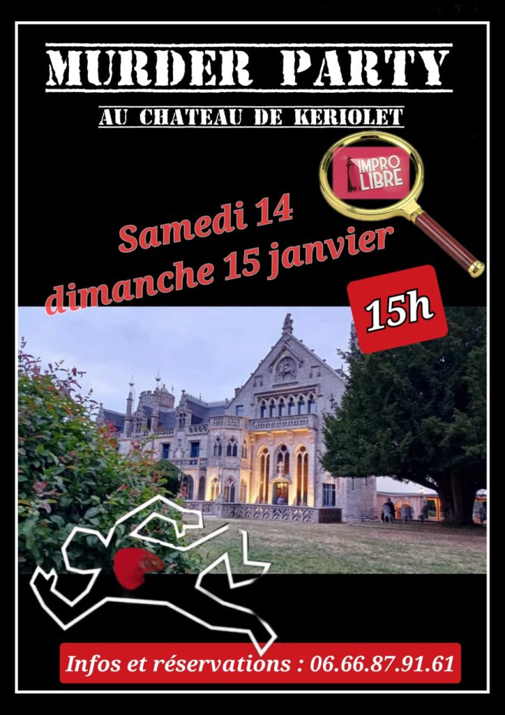 Le château de Keriolet vous souhaite une excellente année 2023 et pour bien commencer l’année, nous aurons le plaisir de vous accueillir pour deux « Murder Party Rois mages » le SAMEDI 14 et DIMANCHE 15 JANVIER à 15H00.