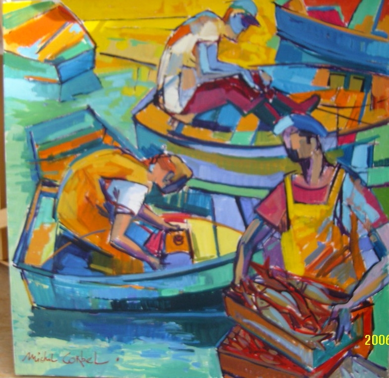 Michel Corbel peint particulièrement des huiles sur toiles, et se caractérise plutôt comme « peintre figuratif coloriste. »